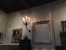 The Dutch Room with an empty frame, symbolizing one of the thirteen stolen artifacts from 1990.